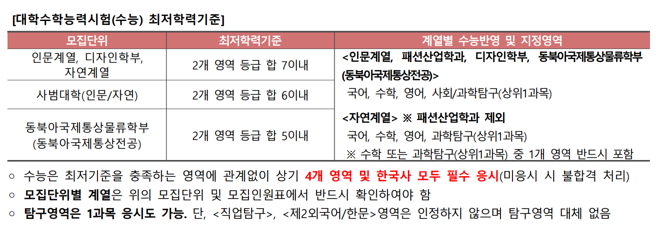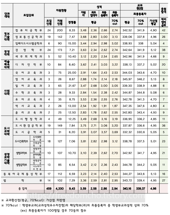 다만 학교별, 학과별로 자세한 내용은 전문가와 상담 후 결정하시기 바랍니다.