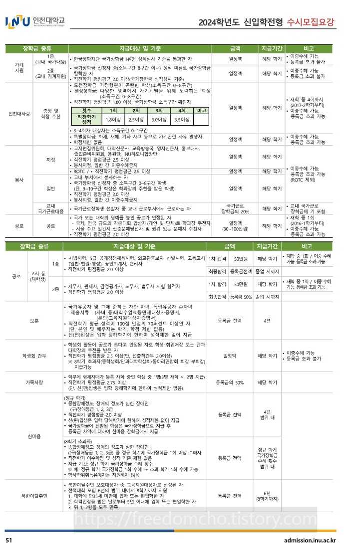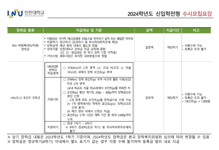 14. 2024 인천대 장학금 (신입생 및 재학생) 안내
