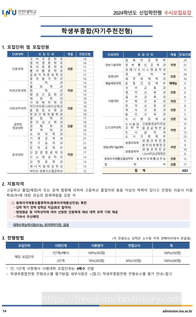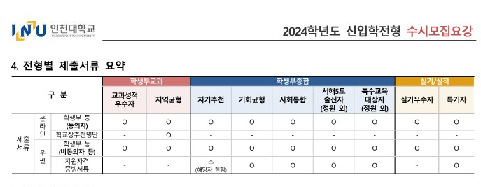 10. 2024 인천대 제출서류 및 전형방법 요약