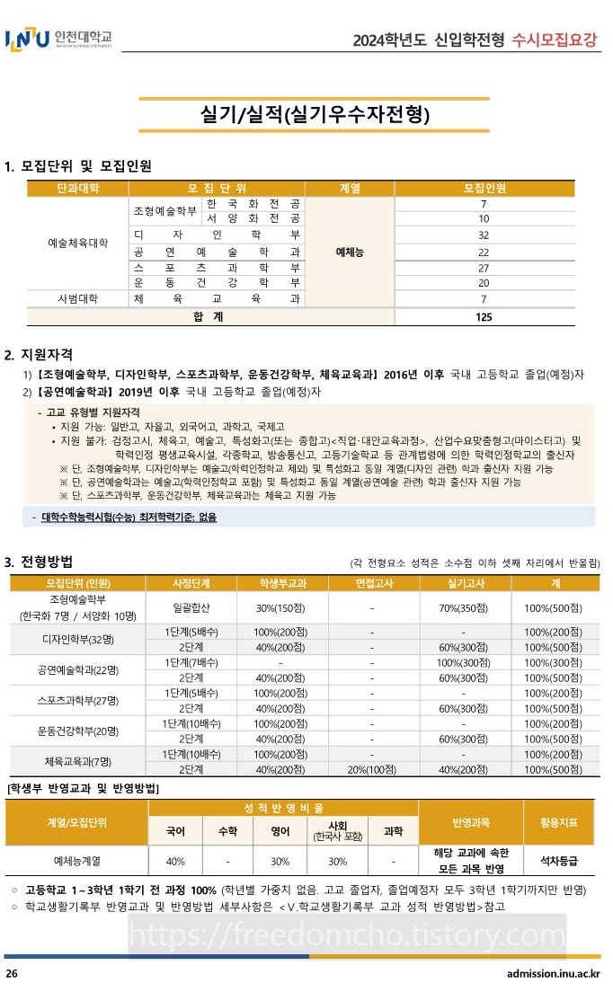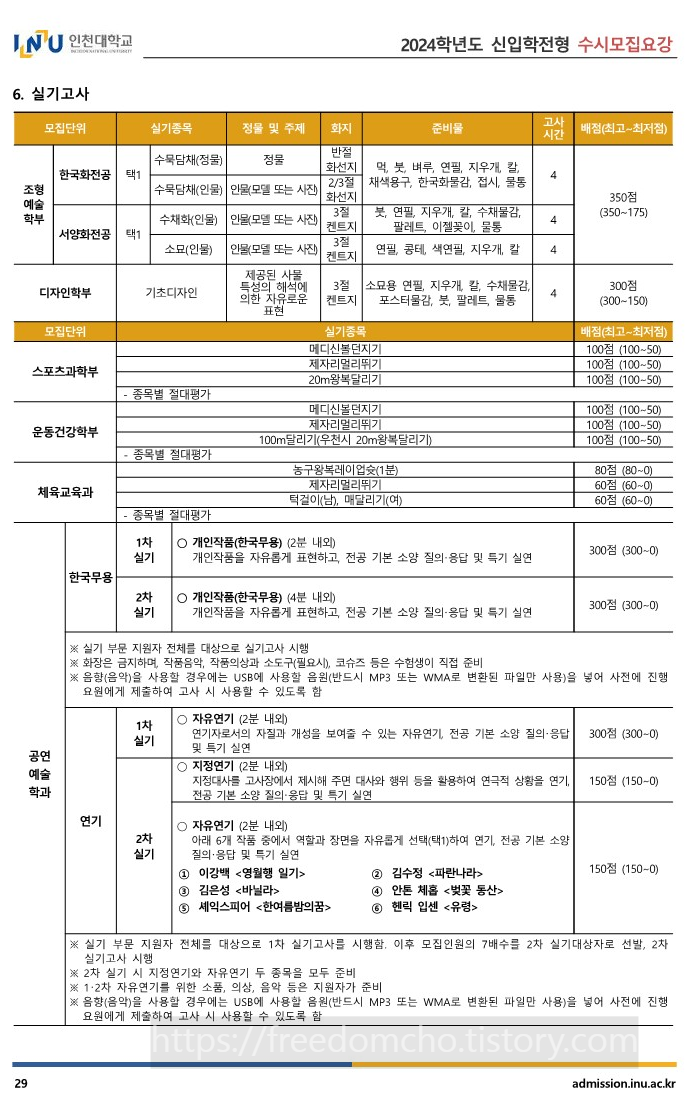 12. 2024 인천대 예체능계열 전형일정 및 실기고사 내용