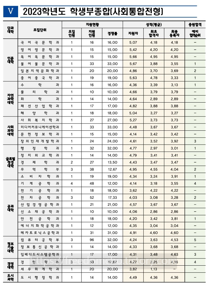 1. 인천대 수시등급 2023 (교과성적우수자전형, 2023학년도 입학생 기준)